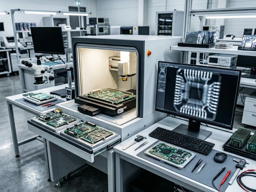 - Internal structures, soldering quality, and placement accuracy of components; especially BGA, QFN, and wound elements—are controlled with high precision under X-Ray.