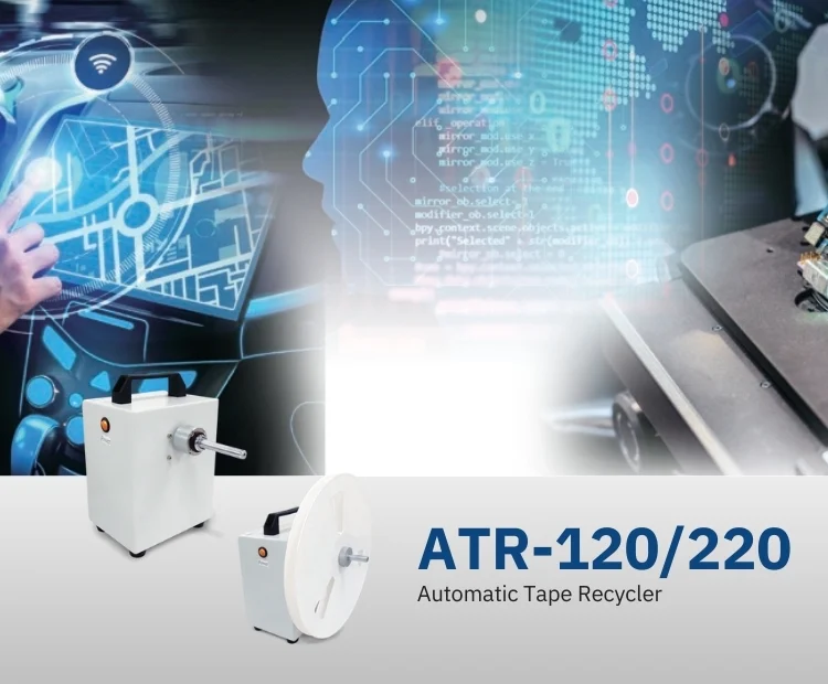 ATR-120 and ATR-220 Automatic Tape Recyclers are designed to recycle IC carrier tapes directly into reels, providing an eco-friendly and cost-saving solution for automated IC programming lines.