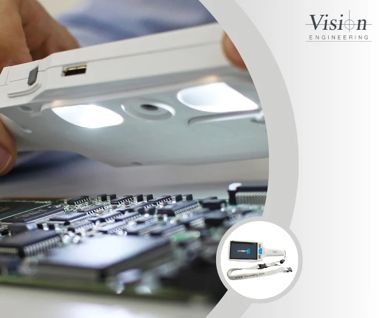 Camβ is Vision Engineering’s portable and secure hand-held digital magnifier. With 4x to 20x magnification, this durable go-anywhere inspection and digital capture tool is suitable for use in the laboratory, factory environments, or field applications.