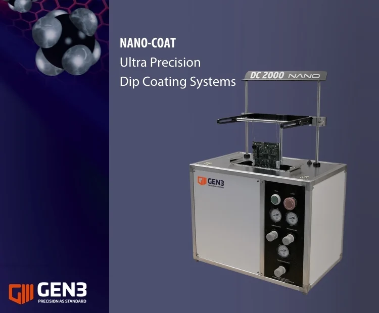 The NANO-COAT Dip Coating Systems are designed for ultra-precision application of conformal coatings ranging from <60 nm to >50 μm, with >3% accuracy. As fully air-operated systems, the Nano-Coat Dip Systems are safe for use with all coating types, including flammable liquids, and support a very wide range of applications.
