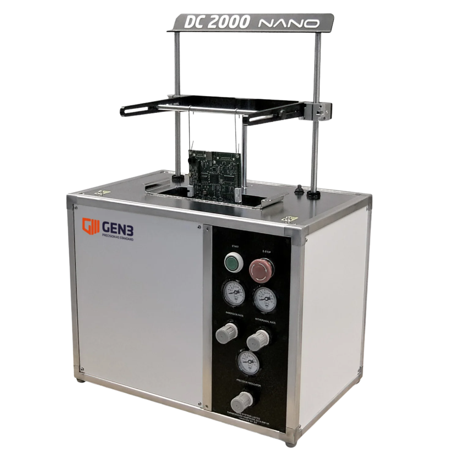 The DC 2000 NANO is a compact, laboratory batch coating system intended for the high-precision application of conformal coatings and photo-resists onto substrates using the dip coating process.