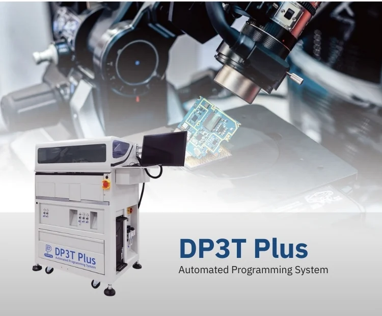 The DP3T Plus Automated IC Programming System supports ultra-small packages down to 1×1 mm and features up to 16 high-performance programming sockets, delivering maximum productivity for high-density electronic devices.