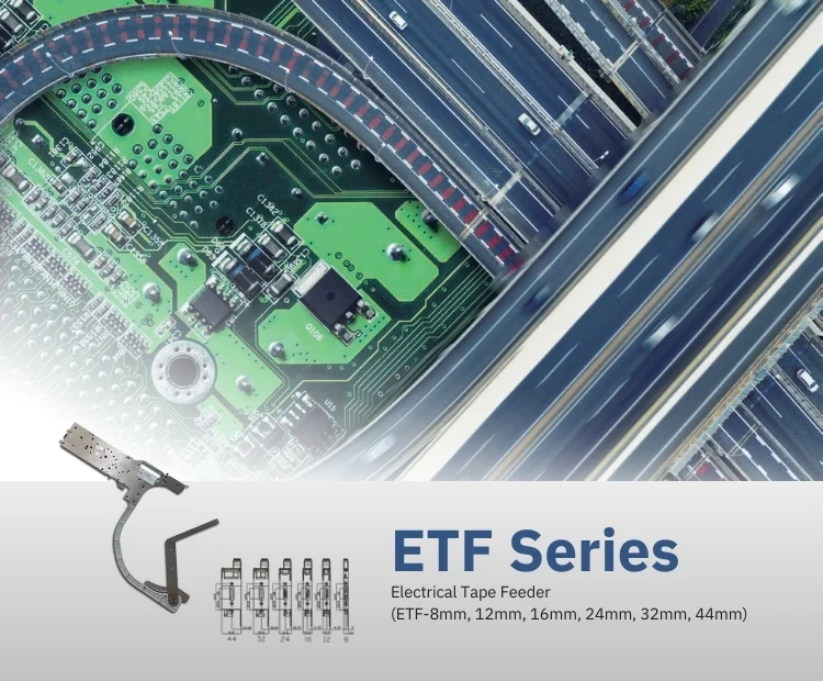 Available in 6 different sizes – 8mm, 12mm, 16mm, 24mm, 32mm, and 44mm, the ETF feeders ensure seamless handling of various IC package dimensions.