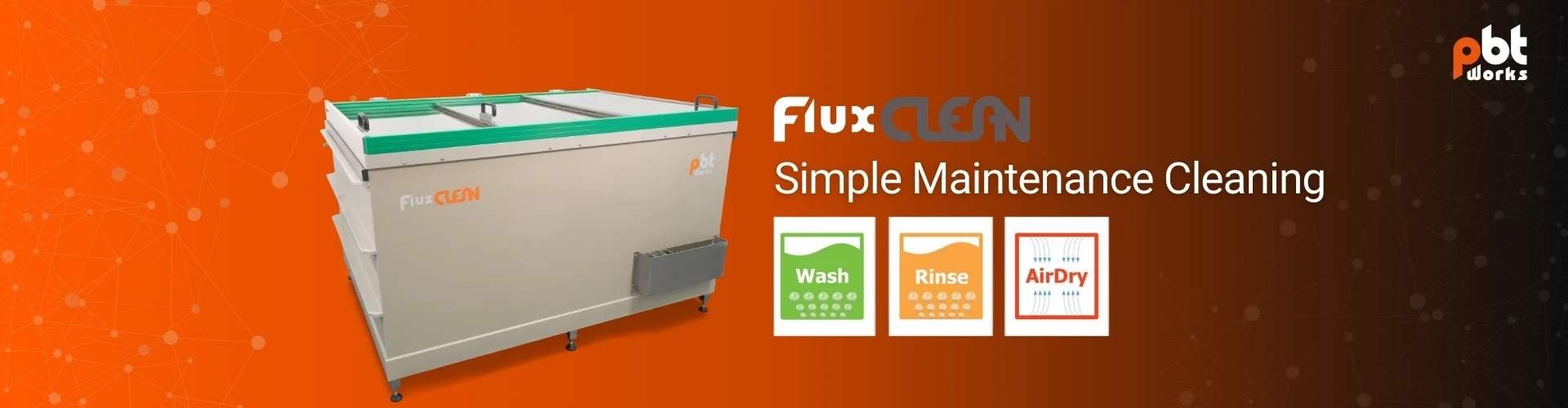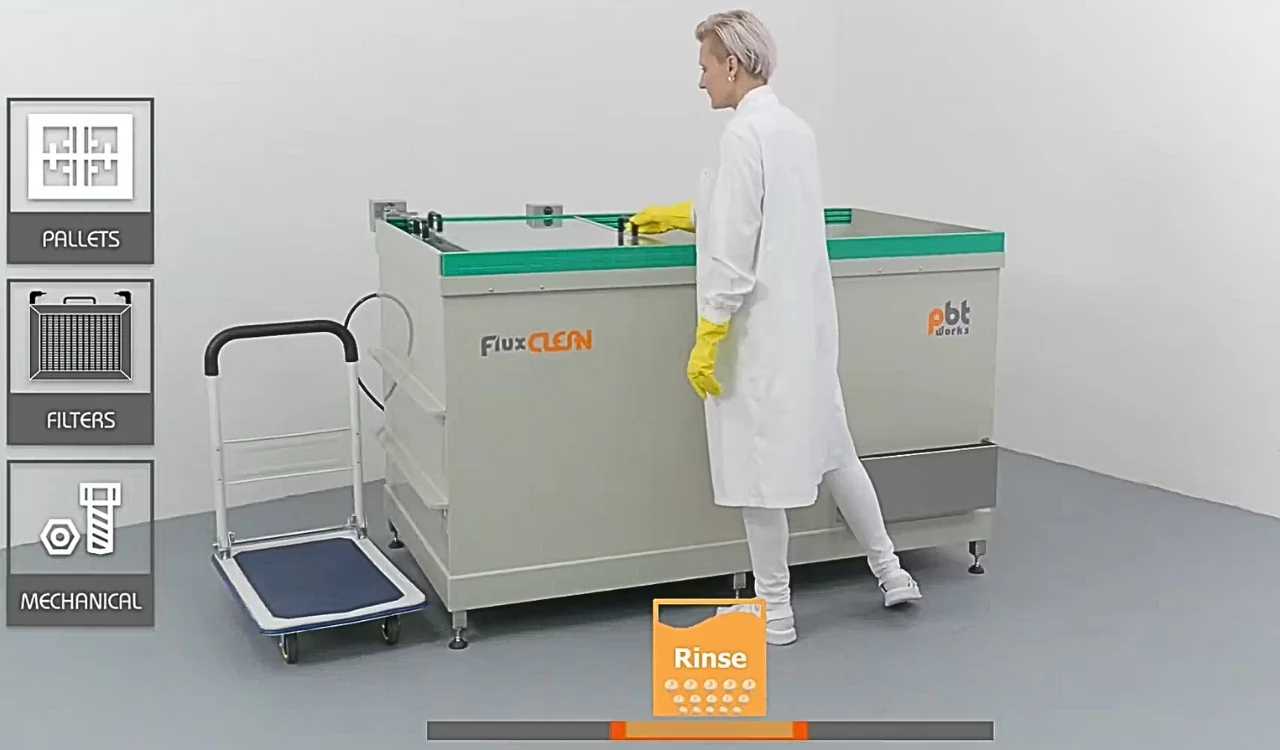 Manual maintenance cleaning machine designed for lower throughput applications. The FluxCLEAN provides a cost-effective solution for handling maintenance cleaning requirements.