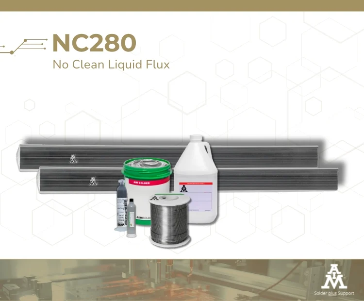 NC280’s exceptional wetting performance complements AIM flux cored wire solders, improving solder quality and operator satisfaction.