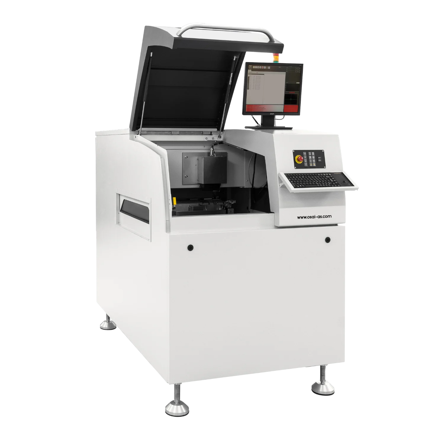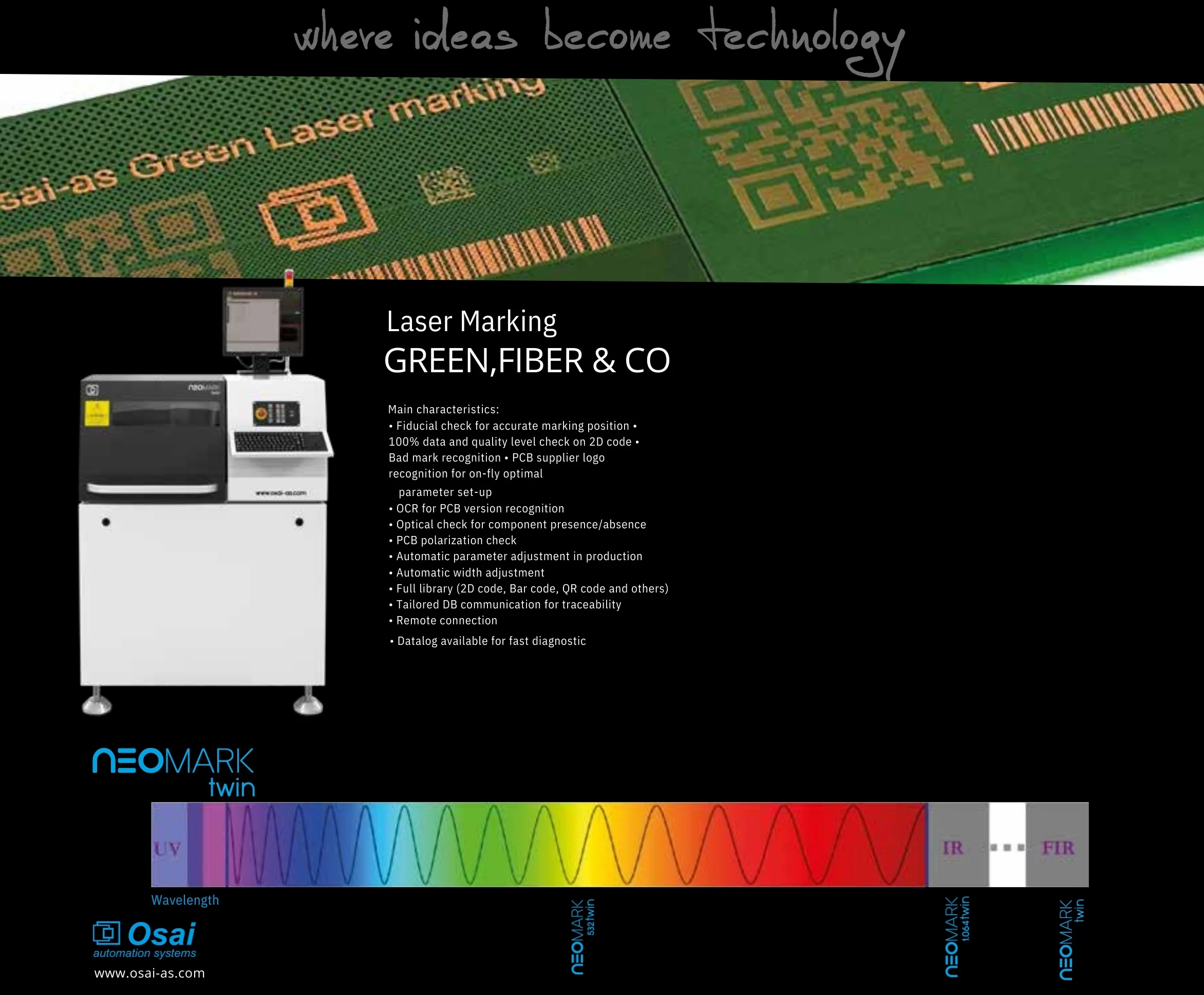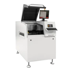 Offering multiple laser source options CO₂, green, and fiber, it enables direct marking on PCB solder mask, as well as on metallic and plastic components. The integrated smart CAM system enhances process reliability by performing quality checks on DM codes and detecting potential bad marks, allowing the machine to automatically skip defective sections during marking.