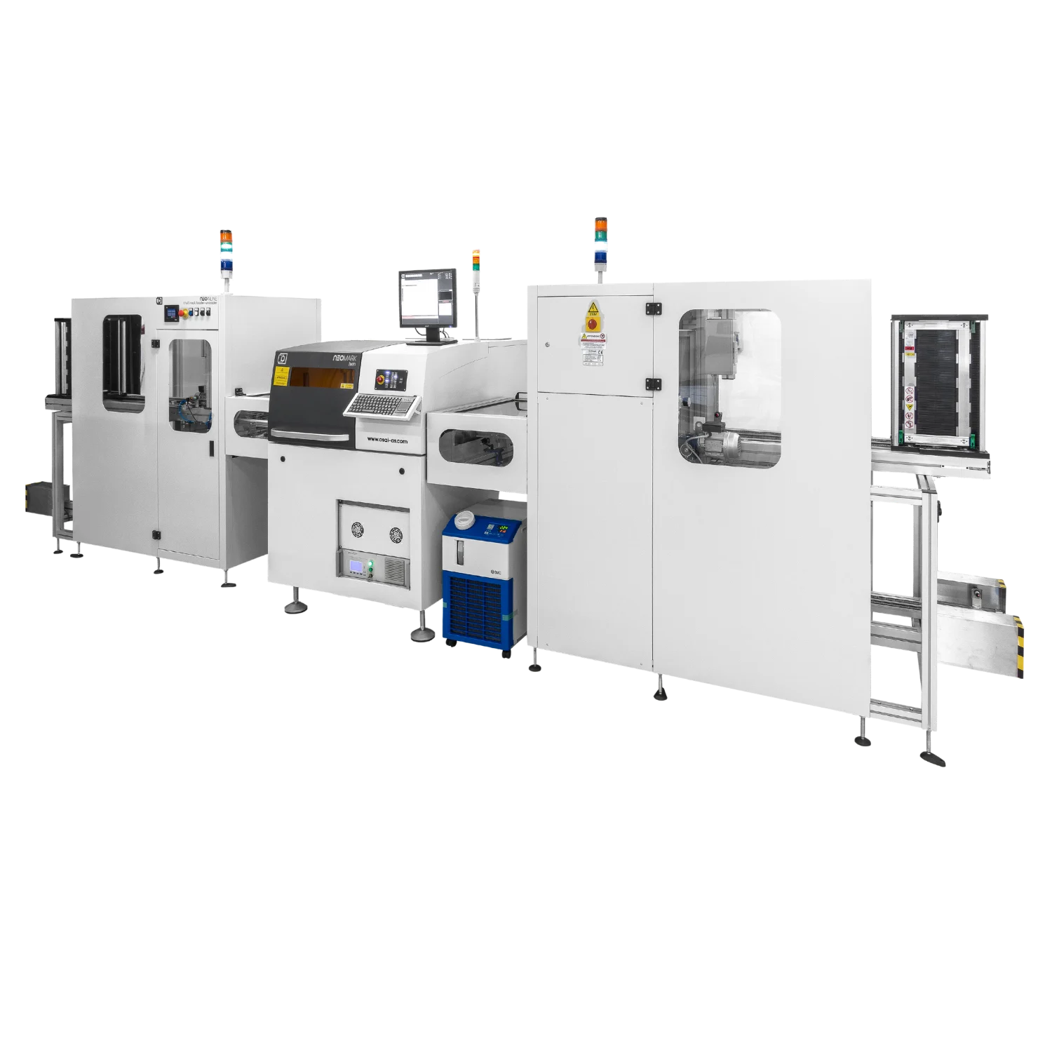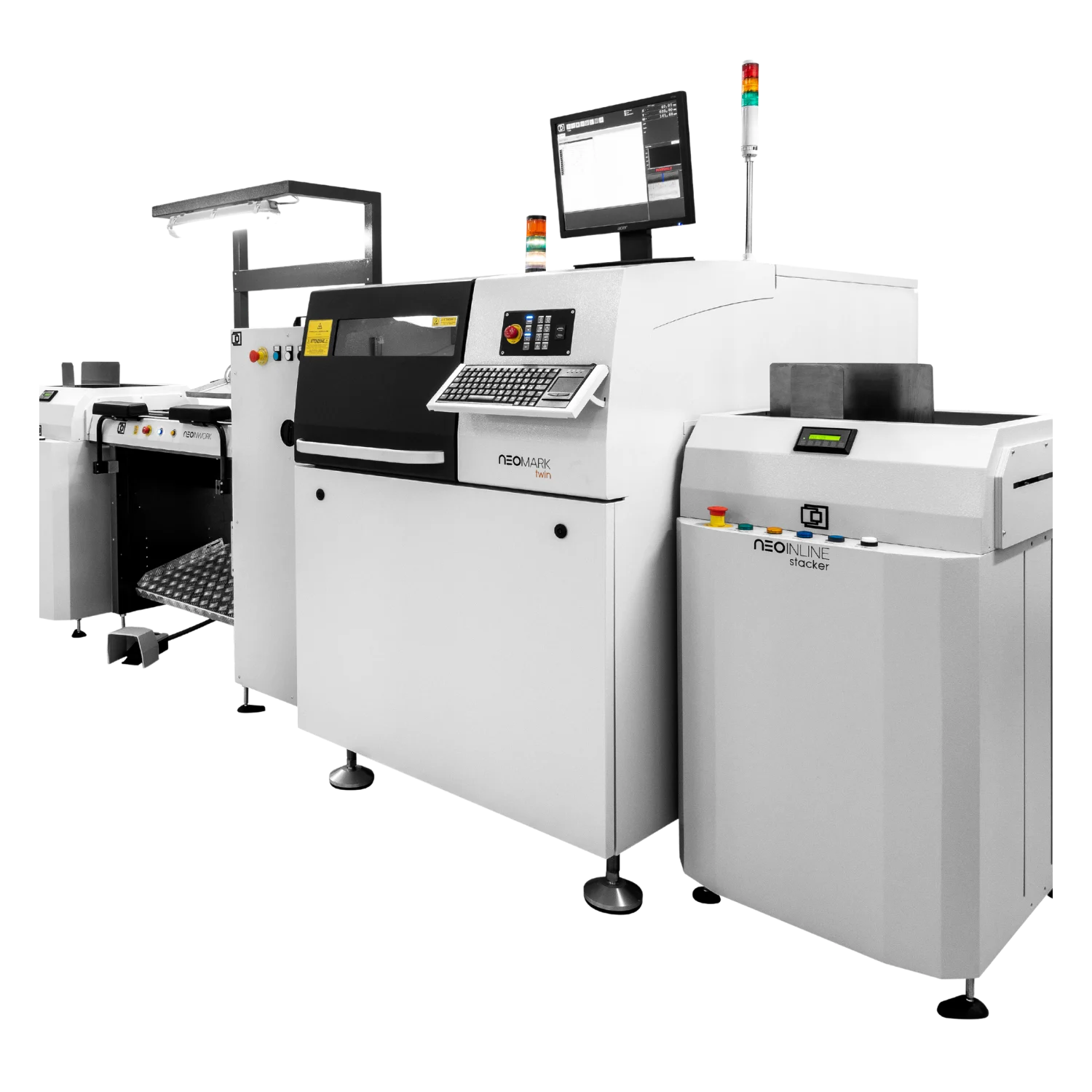 The NeoMark Twin is a versatile laser marking solution designed for applications requiring a large working area and exceptional production flexibility. Its robust mechanical framework supports precise marking on boards up to 480×480 mm, making it ideal for mid-to-large PCB applications.