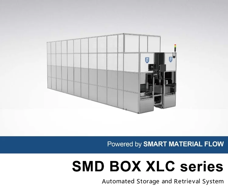 Innovative vertical lift module technology designed for efficient container-based storage. Automate SMT reel, cable, and wire handling with high-precision picking, ESD-safe protection, and complete traceability. Ideal for automotive electronics and diverse production lines.