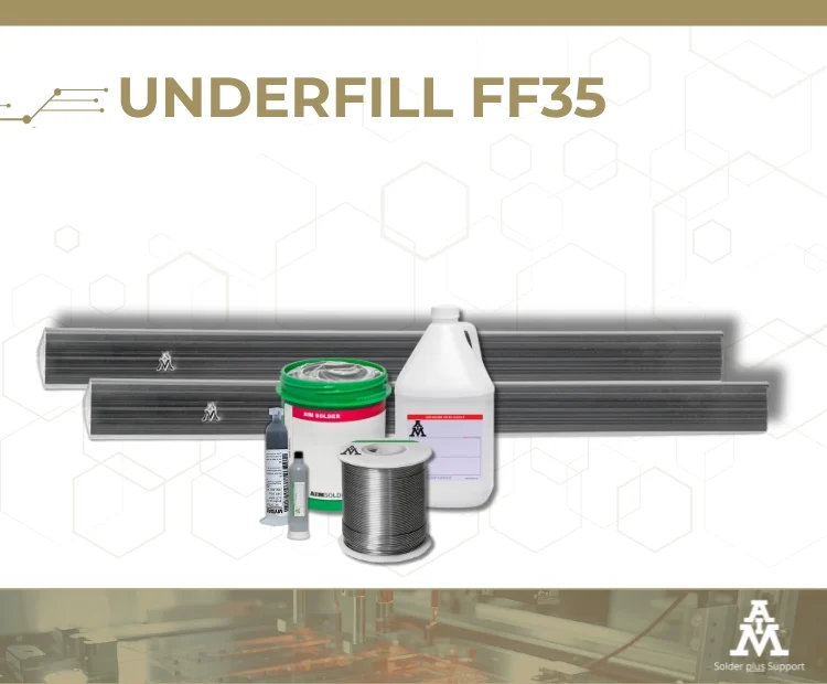 Underfill FF35 is a low surface tension, single component epoxy resin designed for use as a capillary flow underfill for flip chip, CSP, BGA and uBGA assemblies. Underfill FF35 offers excellent capillary action for flat, fast, and complete spread.