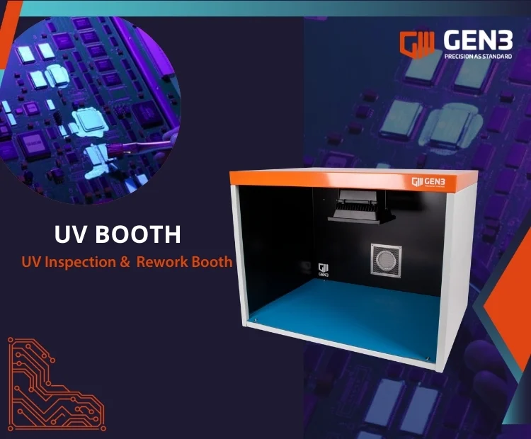 The UV Inspection & Rework Booth is designed to support the inspection of samples that require UV light to highlight discrepancies, contamination, or process-related issues. Engineered for high-performance inspection, the booth enables quick, clear, and reliable visual assessment, supporting quality control activities in sectors such as electronics and medical manufacturing. Its robust construction and intuitive operation allow accurate and efficient inspection for critical processes.