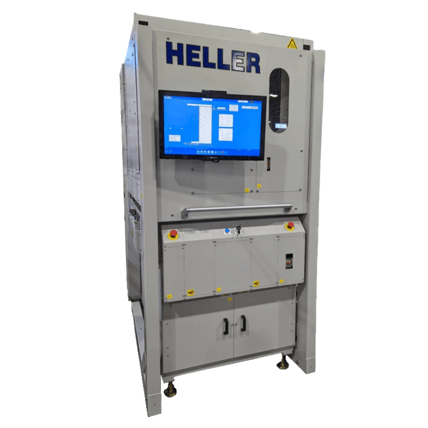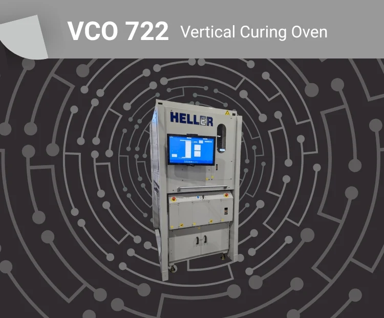 Revised With the largest installed base of US-made in-line vertical ovens, Heller is a top choice for leading electronics manufacturers. Vertical in-line epoxy curing delivers immediate benefits, improving productivity, consistency, and floor space efficiency. Higher productivity with in-line processing — Eliminates manual loading/unloading of batch ovens and reduces idle time by removing the need for warm-up delays. Available in fully and semi-automated configurations. Improved process consistency — Continuous in-line operation prevents temperature variations caused by opening batch oven doors, while forced convection heating ensures uniform thermal profiles for better product quality. A 30-minute curing profile on the VCO 290 Vertical Curing Oven demonstrates exceptional temperature uniformity. Minimal floor space requirement — The vertical design maximizes space utilization. As cleanroom and factory floor allocation costs increase, vertical curing systems can run multi-hour cycles in as little as six square feet of floor area.