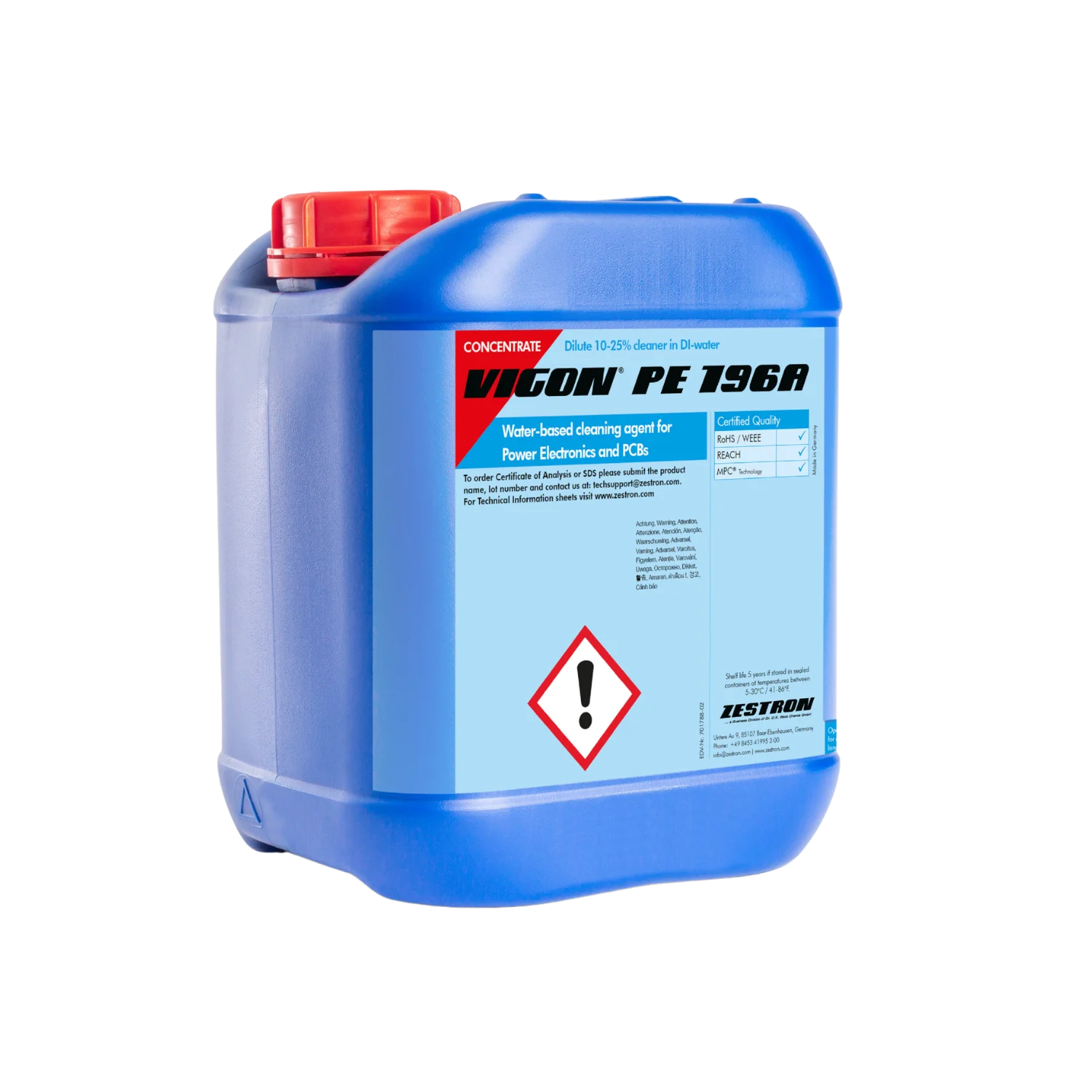 VIGON PE 196A is a water-based, alkaline cleaning agent developed specifically for use in ultrasonic and spray-under-immersion cleaning systems, offering excellent rinsing performance.
