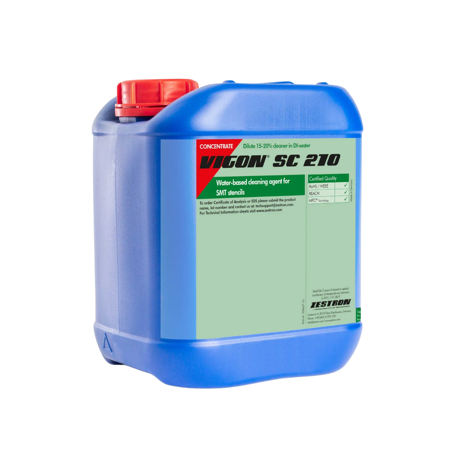 VIGON SC 210 is an MPC based cleaning solution developed for SMT stencils, enabling reliable removal of solder paste and SMT adhesives within a single cleaning process. It delivers optimal cleaning performance even at low operating temperatures.