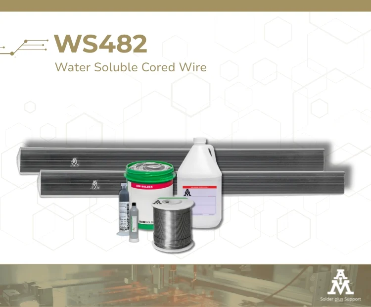 It is available in lead-free alloys including SN100C and SAC305 solder wire. WS482 is compatible with AIM’s unique halide/halogen-free water soluble product offerings including paste and wave solder fluxes.