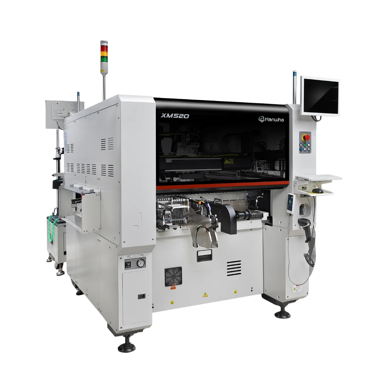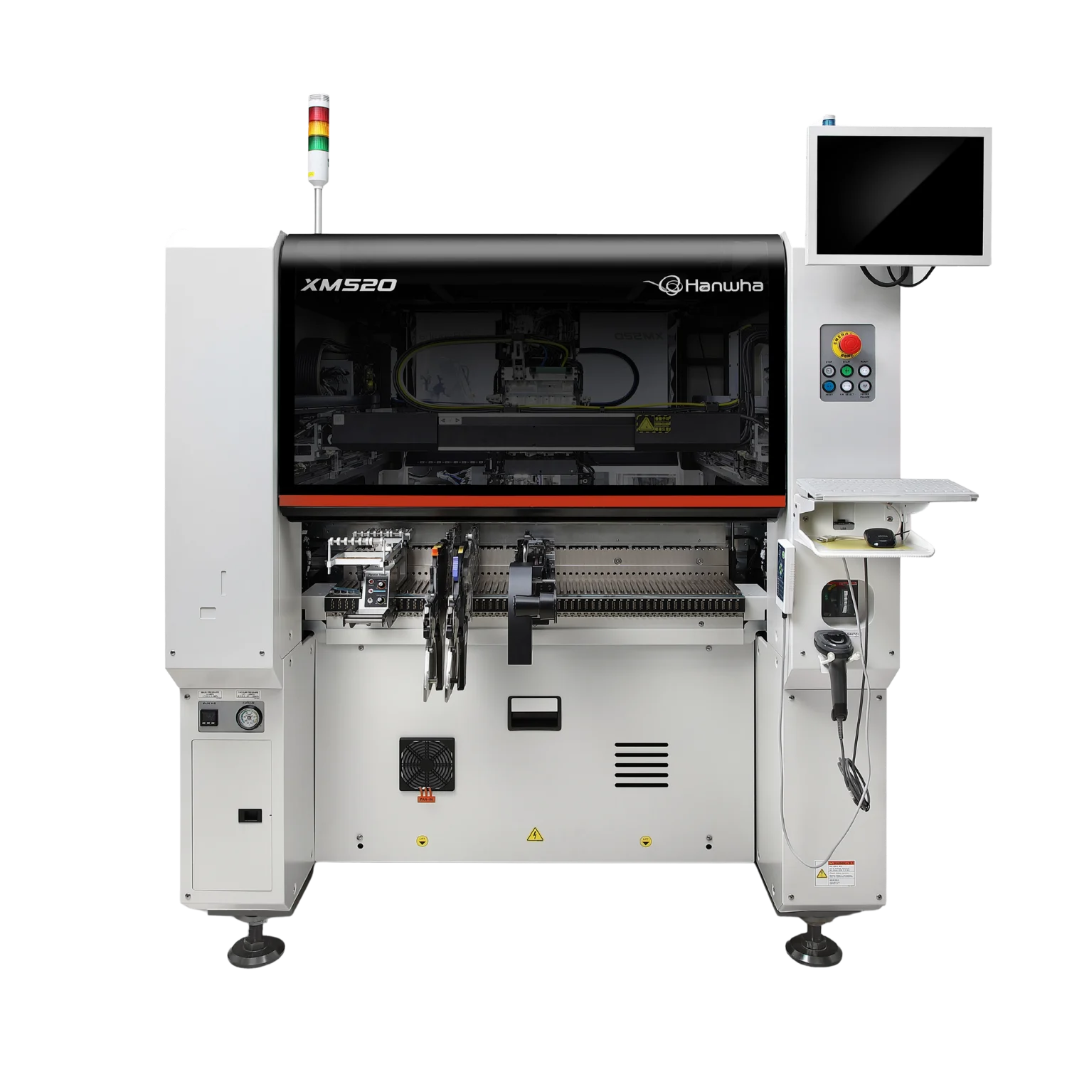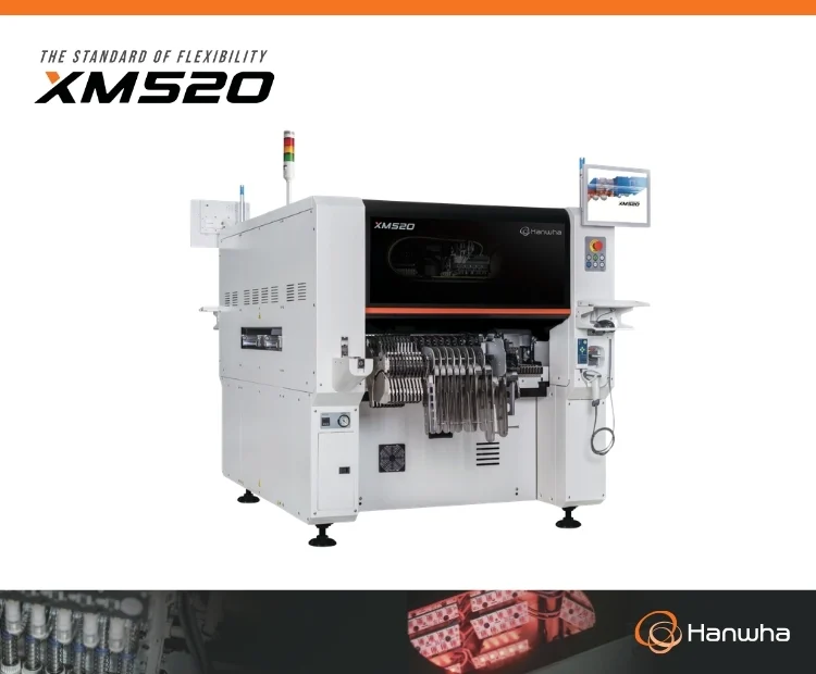 The XM520 is a high-performance, general-purpose chip mounter offering exceptional productivity, precision, and flexibility. It supports a wide range of products, allowing various line configurations and system options.