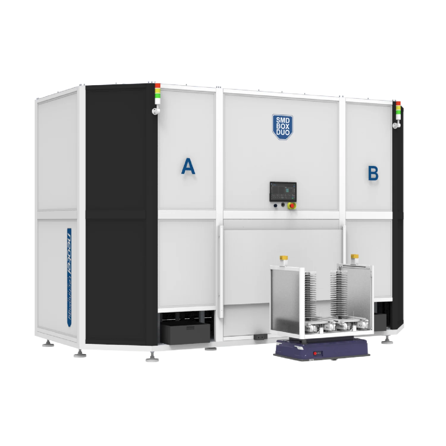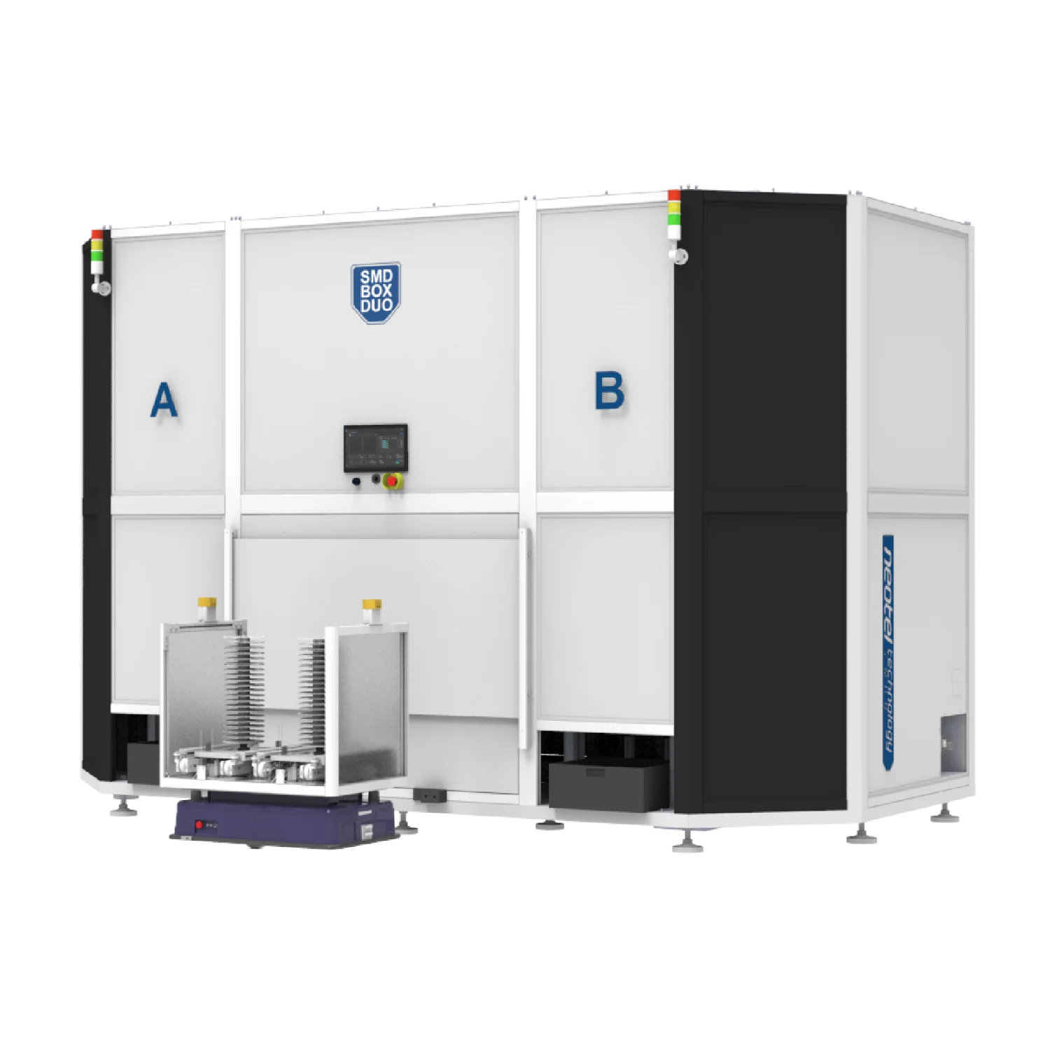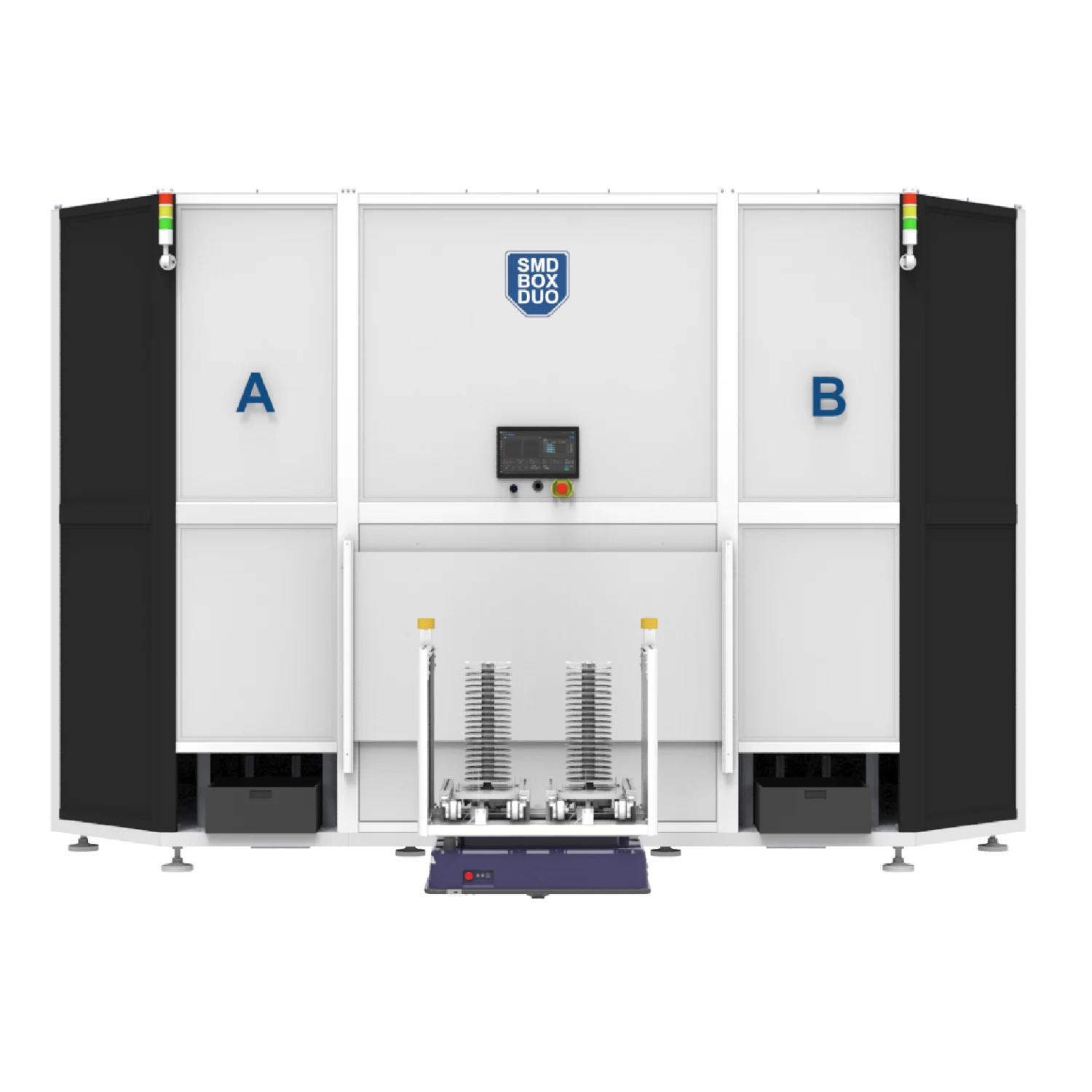 SMT makaralı malzemelerin toplu işlenmesi için çift depolama modüllerine sahip devrim niteliğinde bir malzeme kulesi çözümüdür. Otomatik depolama ve alma işlemleri için troley veya AGV sistemleriyle sorunsuz şekilde entegre olur.