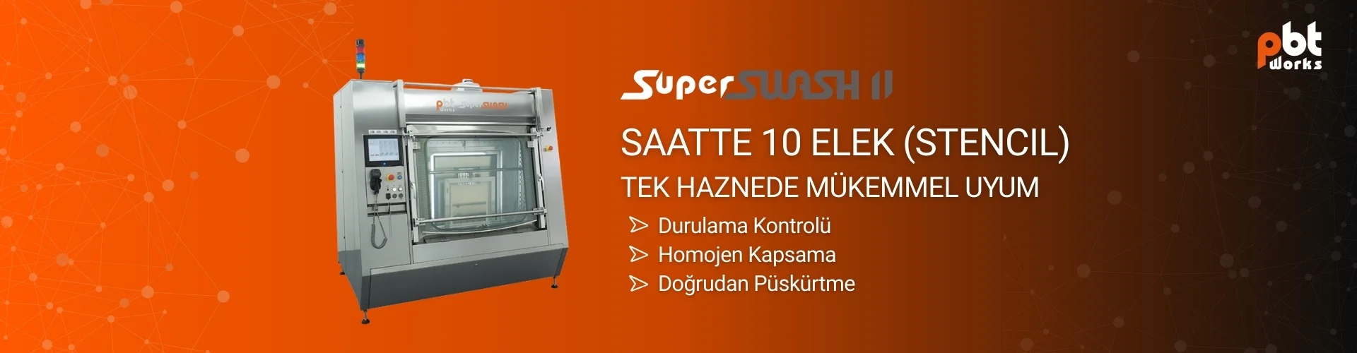 SuperSWASH II, stencil, squeegee ve hatalı baskı yapılmış PCB’lerin temizliği için tasarlanmış yüksek kapasiteli ve dayanıklı bir makinedir. Büyük ölçekli üretim ortamları için uygundur ve yoğun operasyonel gereksinimleri destekler. Sistem, saatte 10 adede kadar stencil temizleme kapasitesine sahiptir ve verimli işlem performansı sağlar.